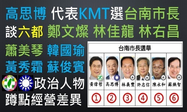 ★ 《高思博選台南市長:六都除名府城?從鄭文燦、林佳龍、林右昌、蕭美琴、黃秀霜、蘇俊賓,談民進黨國民黨藍綠在高雄台中桃園基隆花蓮台東縣市蹲點經營差異!高育仁兒子、朱立倫小舅子2018百里侯換人做做看?UNOLIN政治新聞評論2018-11》